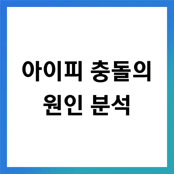 아이피 충돌 은 네트워크에서 여러 장치가 동일한 IP 주소를 할당받을 때 발생하는 문제로, 이는 네트워크 환경에서 심각한 장애를 일으킬 수 있습니다. 제 경험에 비추어 보았을 때, 아이피 충돌의 원인은 크게 두 가지로 나눌 수 있습니다. 첫 번째는 DHCP 서버의 설정 오류 , 두 번째는 수동으로 IP를 할당하는 장치의 잘못된 설정 입니다.