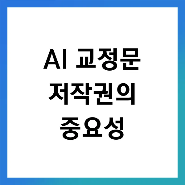 결론적으로, AI 교정문 저작권의 중요성은 기술적 발전과 사회적 법적 환경의 변화 속에서 무시할 수 없는 요소 입니다. 이는 법적 보호를 통해 창작자의 권리를 지키고 , 창의적인 콘텐츠 생산을 장려하며, 기업과 사회 전반에 긍정적인 영향을 미칠 수 있다 는 점에서 그 의미가 큽니다. AI 교정문에 대한 저작권 보호는 단순한 법적 쟁점을 넘어서, 디지털 시대의 새로운 창작 생태계를 구축하는 데 기여하는 중요한 기초 가 됩니다.