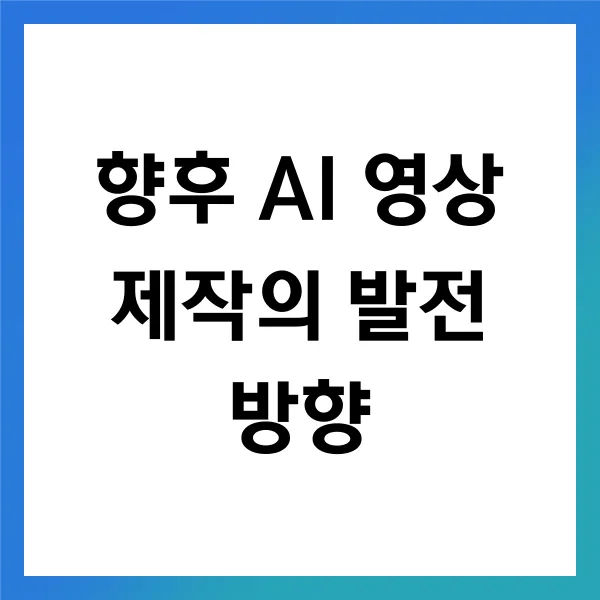 이처럼 AI 영상 제작의 발전 방향은 다방면에서의 혁신을 수반하며, 그 과정에서 우리는 새로운 가능성과 도전을 마주하게 될 것입니다. AI가 제공하는 다양한 기회는 영상 산업뿐만 아니라, 사회 전반에 걸쳐 긍정적인 영향을 미칠 것 으로 기대됩니다. 향후 AI 기술의 지속적인 발전은, 지금까지 경험하지 못한 수준의 창의적이고 효율적인 콘텐츠 제작을 가능하게 할 것 입니다. 이러한 흐름을 주도적으로 파악하고 적응해 나가는 것은, 영상 제작 분야의 경쟁력을 유지하는 데 필수적 입니다.