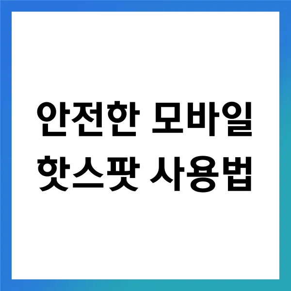 모바일 핫스팟을 사용하면서 안전을 고려하지 않는다면, 큰 위험에 처할 수 있습니다. 제가 처음 모바일 핫스팟을 설정했을 때는 그 중요성을 간과했던 경험이 있습니다. 그런데, 몇 가지 안전 수칙을 알게 된 후로는 보다 안전하게 사용할 수 있게 되었습니다. 그렇다면, 어떤 점들을 유의해야 할까요?