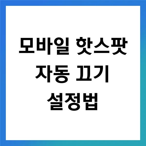 이처럼 자동 끄기 기능은 단순히 켜고 끄는 것을 넘어서, 데이터 관리를 쉽게 하고 사용자의 편의성을 높여주는 중요한 도구입니다. 핫스팟을 자주 사용하는 분들에게는 이 기능이 필수적이라 할 수 있겠죠!