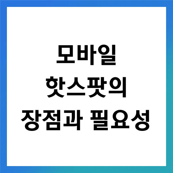 결국, 모바일 핫스팟은 단순한 편리함을 넘어 , 커뮤니케이션, 업무, 정보 접근 등 현대인의 필수적인 요소로 자리잡고 있습니다. 이런 다양한 장점 덕분에 제 일상과 업무 방식이 변화했음을 실감하고 있습니다. 핫스팟 기능을 제대로 활용하면 언제 어디서나 효율적으로 인터넷을 이용할 수 있어, 더 많은 가능성을 열어줄 수 있습니다.