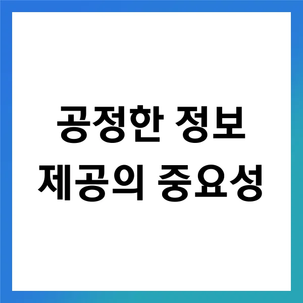 결론적으로, 공정한 정보 제공은 현대 사회의 필수적인 요구사항입니다. 이는 단순한 정보 전달의 문제를 넘어 사회적 신뢰와 안정성을 구축하는 근본적인 역할을 합니다. 정보 제공자는 정확하고 공정한 정보를 제공하는 것이 자신의 책임임을 자각하고, 이를 위해 끊임없이 노력해야 합니다. 기술과 윤리적 기준을 결합한 정보 환경에서 사용자는 보다 신뢰할 수 있는 정보를 접할 수 있으며, 이는 사회 전반의 발전과 안정을 도모하는 기반이 될 것입니다.
