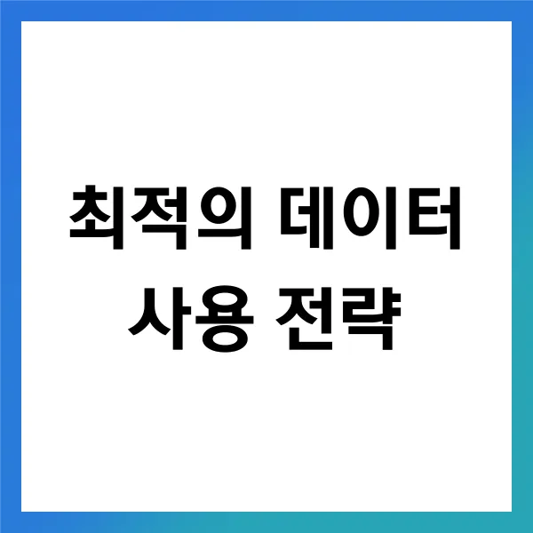 이처럼, 최적의 데이터 사용 전략은 단순히 '데이터를 아끼자'라는 개념을 넘어, 실제로 어떻게 하면 효율적으로 사용할 수 있는지를 고민해야 합니다. 너무 많은 앱을 실행하지 않고, Wi-Fi 환경을 최대한 활용하는 것만으로도 큰 차이를 만들 수 있습니다. 실생활에서 간단한 조정들로도 많은 데이터를 절약할 수 있으니, 여러분도 이 방법을 활용해 보시길 바랍니다.