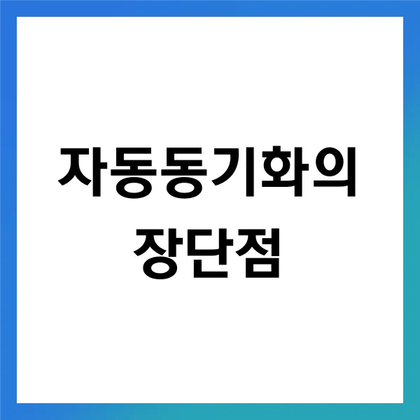 이처럼 자동동기화는 그 자체로 많은 이점을 제공하지만, 이를 성공적으로 활용하기 위해서는 몇 가지 주의할 점이 있습니다. 기업과 개인은 이러한 장단점을 모두 이해하고, 적절한 대처 방안을 마련 해야 최상의 결과를 얻을 수 있습니다. 각 상황에 따른 맞춤형 관리 전략을 통해, 자동동기화의 장점은 극대화하고 단점은 최소화하는 접근 이 필요합니다.