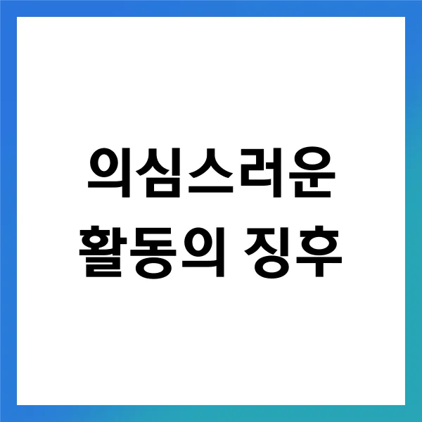 이처럼, 의심스러운 활동의 징후는 다양하며, 이를 감지하고 조기에 대응하는 것이 매우 중요합니다. 어떤 작은 이상 징후라도 간과하지 말고, 적극적으로 대처하여 자신을 보호하는 것이 필요합니다.