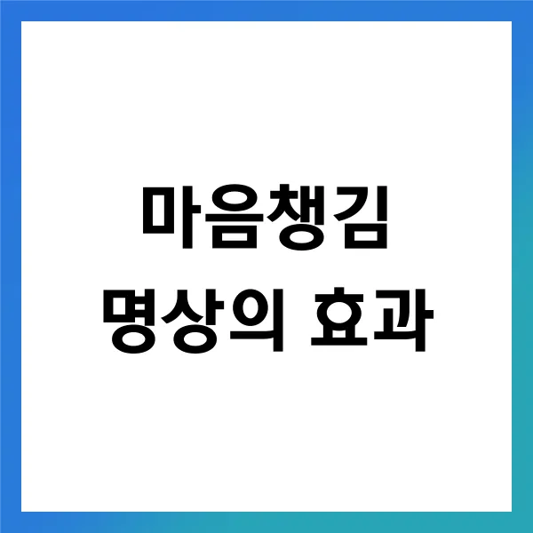 한편, 일상 생활에서 마음챙김 명상을 실천하는 것은 비교적 간단합니다. 어떤 공간에서도 짧은 시간의 명상 및 호흡 조절을 통해 마음의 평화를 찾을 수 있습니다 . 불과 몇 분 간의 명상으로도 스트레스로 인한 심리적 부담을 덜어낼 수 있으며, 이는 꾸준히 실천할수록 더욱 강력한 효과를 발휘합니다.