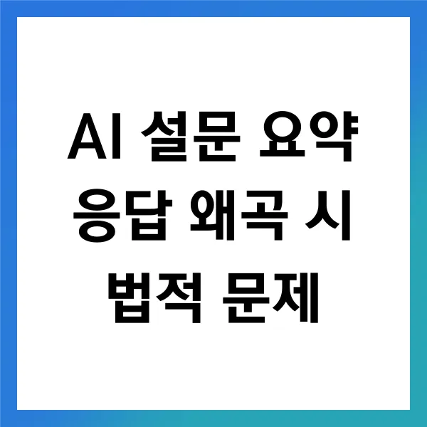 인공지능(AI) 기술이 급속도로 발전함에 따라 AI를 활용한 설문 요약이 점차 일반화되고 있습니다. 그러나 AI 설문 요약의 응답 왜곡 은 법적 문제로 이어질 수 있는 중요한 사안 입니다. 잘못된 데이터 해석은 법적 규제와 투명성 문제 를 불러일으킬 수 있으며, AI 활용의 윤리적 측면에 대한 깊은 이해 가 필요합니다. 이런 상황에서 법적 책임과 윤리적 고려 는 여러 산업에서 AI 기술을 안전하고 책임감 있게 사용하는 데 중요한 요소 로 작용합니다. AI 설문 요약의 신뢰성을 확보하기 위해 어떤 법적 규제 가 필요한지 깊이 탐색해보겠습니다.