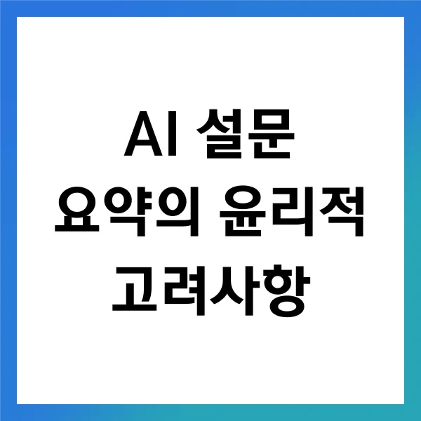 AI를 활용한 설문 요약 은 효율성을 높이는 데 기여 하지만, 데이터 왜곡이나 법적 책임 문제 는 신중한 고려가 필요합니다 . 관련 법적 규제와 투명성을 준수 하는 것이 중요하며, 윤리적인 관점에서 AI의 책임성을 확보 해야 합니다. 이러한 측면을 철저히 따진다면 AI 기술은 더 큰 신뢰를 얻을 수 있을 것입니다 . 기술 발전이 사용자와 사회에 긍정적인 영향을 미치도록 지속적인 검토와 조정이 필요합니다.