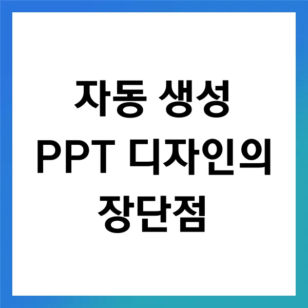 우선, 자동 생성 PPT 디자인 의 가장 큰 장점으로는 빠른 제작 속도 를 들 수 있습니다. 일반적으로 PPT 디자인에는 시간과 노력이 수반 되지만, AI 도구를 사용하면 몇 번의 클릭만으로도 다양한 템플릿과 스타일을 적용할 수 있습니다. 이는 특히 기업에서 중요한 프리젠테이션을 준비할 때, 시간 절약 측면에서 큰 이점 을 제공합니다. 한 조사에 따르면, AI 기반 디자인 도구를 사용함으로써 사용자가 프레젠테이션 제작에 투자하는 시간이 평균 30% 이상 감소한다고 합니다. 사용자 친화적인 인터페이스 와 고품질의 디자인 을 제공하는 것도 이러한 기술의 큰 매력입니다. 전문적인 디자인 지식이 없는 사용자라도 AI 도구를 사용하면 쉽게 시각적으로 매력적인 프레젠테이션을 생성할 수 있습니다. 이러한 접근성은 다양한 배경의 사람들이 자신의 아이디어를 효과적으로 전달할 수 있도록 돕습니다.