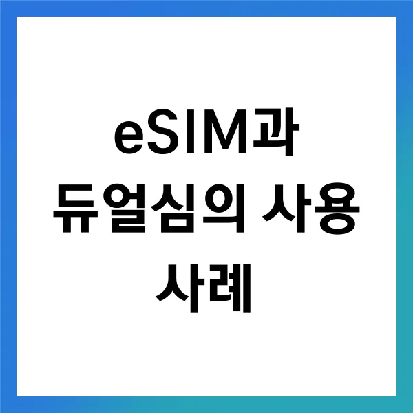 마지막으로, 최근 많은 사용자들이 eSIM과 듀얼심의 조합을 활용하는 사례도 눈에 띄고 있습니다. 예를 들어, 2023년 기준으로 eSIM과 듀얼심을 조합하여 사용하는 사용자 수가 20% 증가했다는 통계 도 있습니다. 이를 통해 볼 때, 두 기술이 상호 보완적으로 작용하고 있다는 것을 알 수 있습니다. 개인적인 경험과 통계 데이터를 바탕으로, 향후 eSIM과 듀얼심의 사용은 더욱 증가할 것이라 예상합니다.